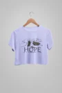 The “Hope” crop top is a testament to the human spirit. No matter how bleak the circumstances may seem, this tee represents the belief that better days lie ahead.